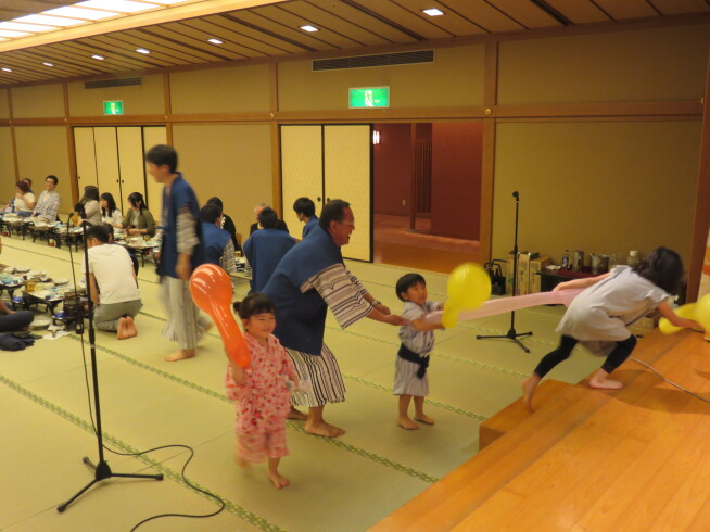 社員とその家族、グループ会社の社員が一同に会し温泉旅行。宴会場ではお子様たちが大騒ぎ!