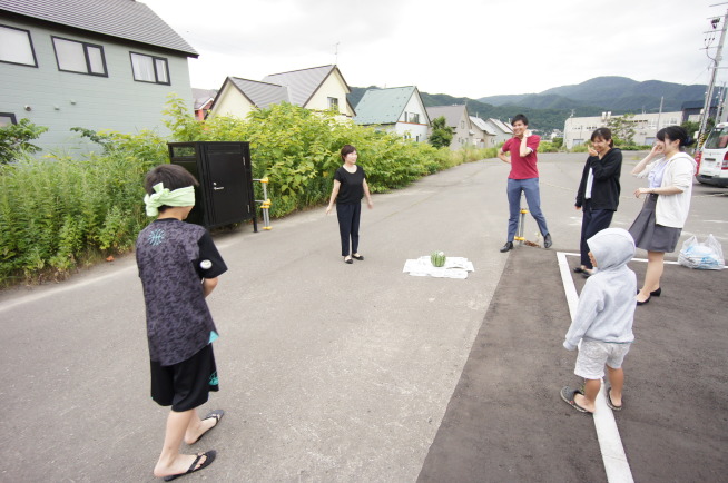 夏の懇親会。スイカ割りや花火で盛り上がりました。